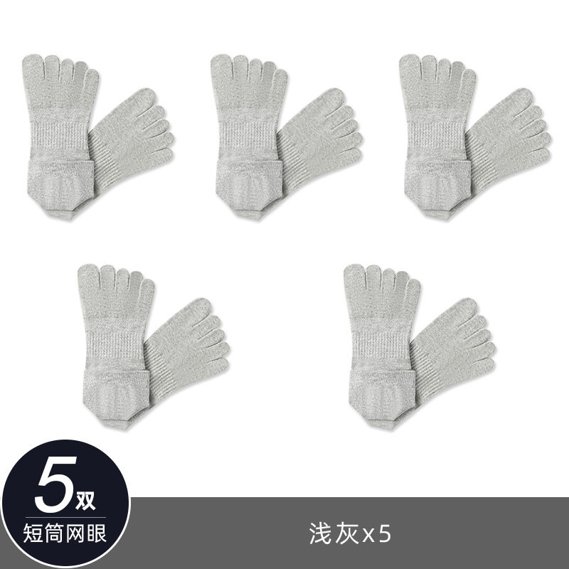 恒源祥五指袜男袜子男士纯棉薄款防臭网眼透气分趾脚趾中筒袜_868 均码M(38-44码) 【短筒】5浅灰