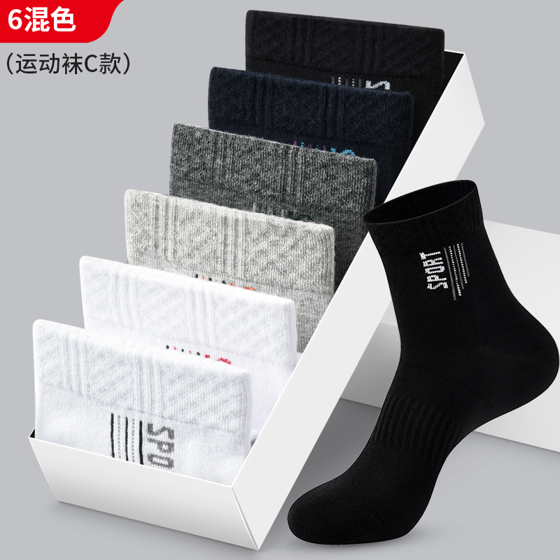 恒源祥袜子男纯棉吸汗防臭运动袜长短袜春夏季中筒全棉袜网眼男袜_1 纯棉防臭运动袜(38-44码) 运动袜C款-6混色