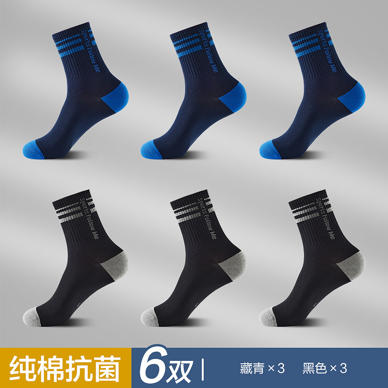 恒源祥袜子男中筒袜纯棉春秋季吸汗透气运动黑色棉男士长袜_699 均码 藏青3/黑色3
