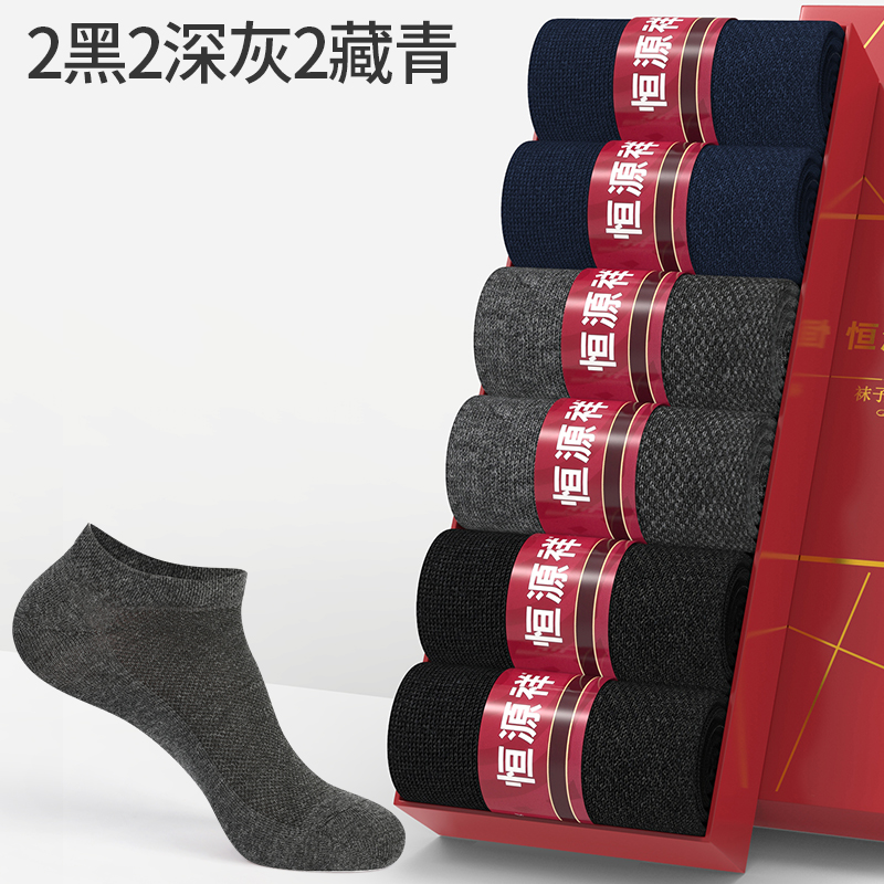 恒源祥夏季薄款浅口白色船袜纯棉男士袜子全棉透气排汗网眼短筒袜_1 男士短筒(38-44码) 春夏网眼款-2黑2深灰2藏青
