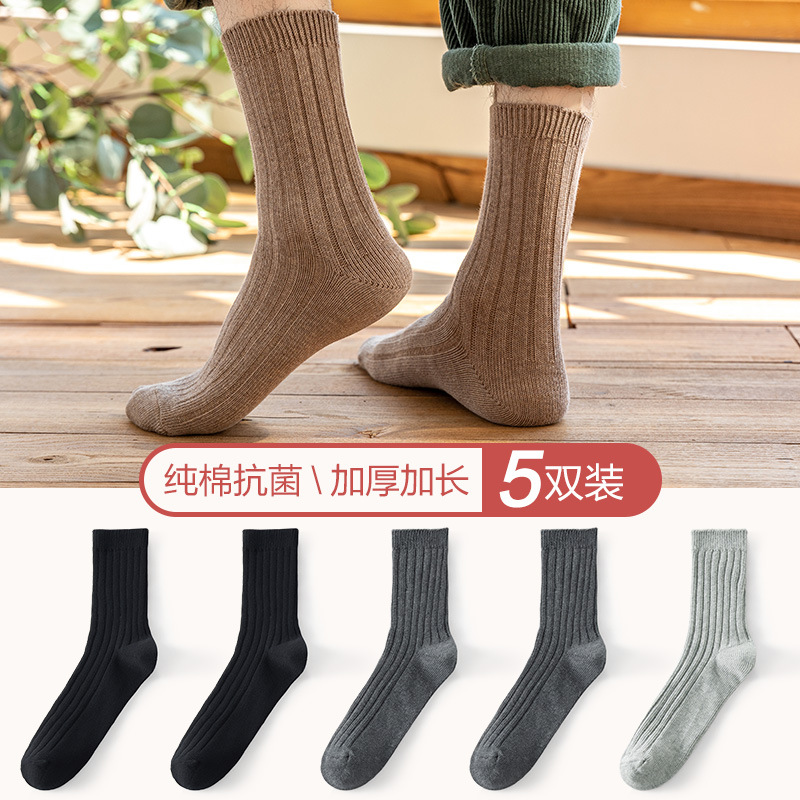 恒源祥纯棉袜子男士中筒袜秋冬款加厚棉吸汗冬季袜_758 均码【加厚保暖抗菌消臭】 2黑色/2深灰/浅灰