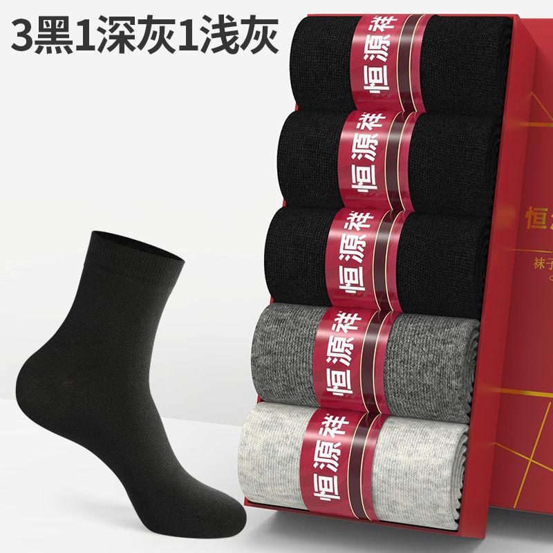 恒源祥袜子秋冬男士中筒加厚款棉袜防臭透气耐磨商务男袜船袜短袜_353_580 2盒秋冬加厚中筒(38-44码) 3黑1深灰1浅灰