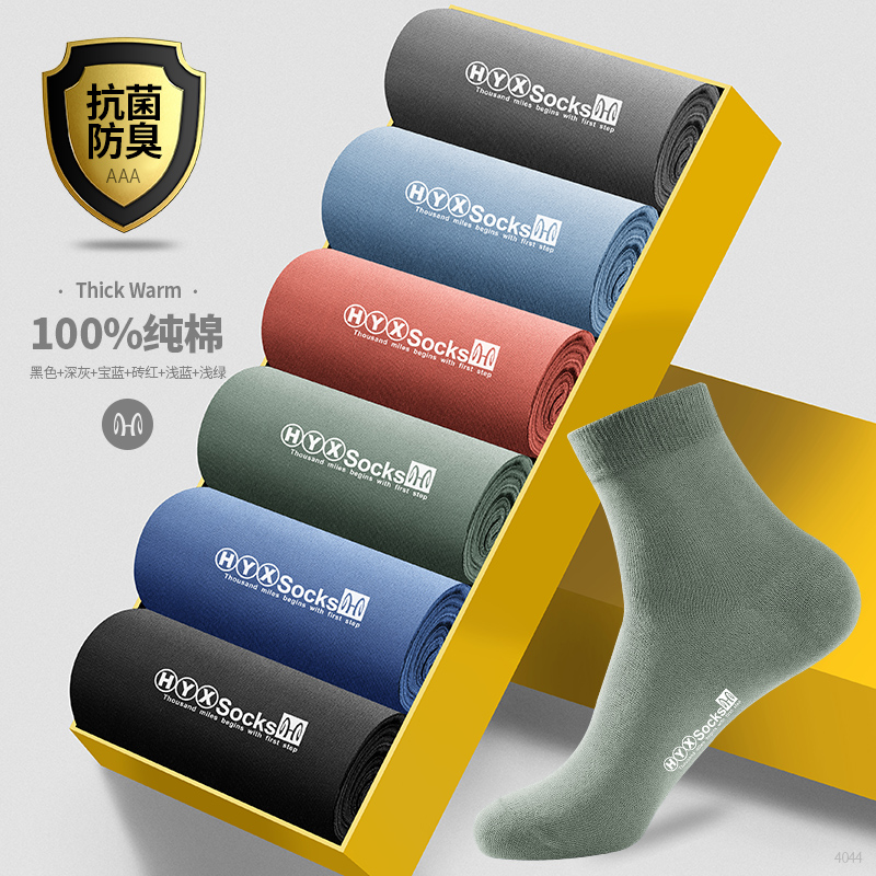 恒源祥袜子男纯棉春夏季男士中筒袜四季棉运动透气男袜_177 均码(适合39码-44码纯棉防臭) 黑色+深灰+宝蓝+酒红+浅蓝+浅绿共6双装