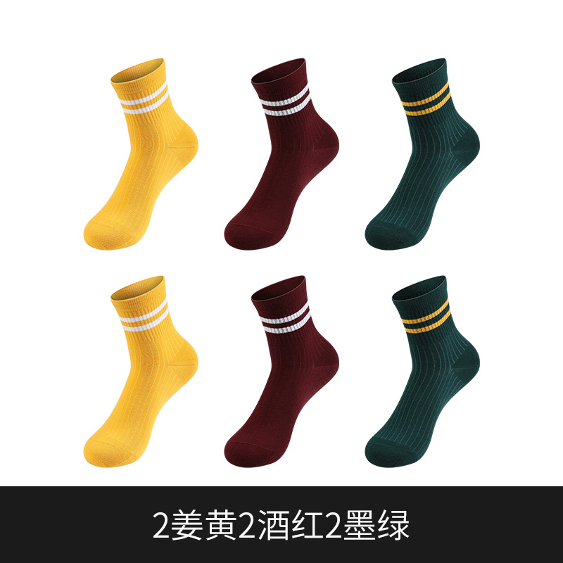 恒源祥袜子女中筒袜韩版学院风纯棉春夏季薄款日系女袜i潮袜_961 1件-100%棉女袜(35-39码) 100%纯棉女袜-2姜黄2酒红2墨绿