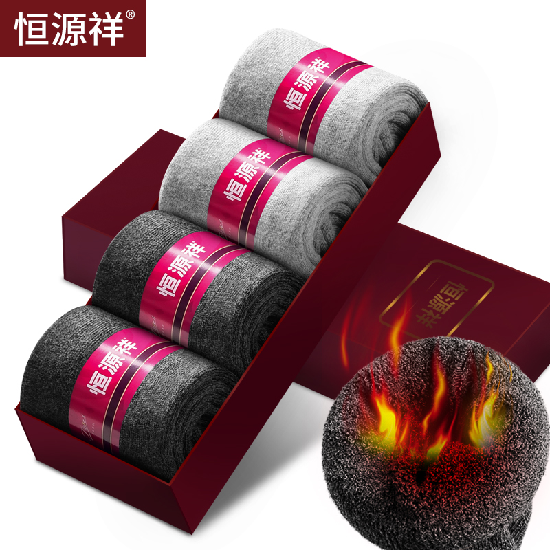 恒源祥袜子男秋冬季加绒加厚保暖毛圈纯棉冬天抗寒全棉中筒毛巾袜 100%棉毛圈袜 男士毛圈-2深灰2浅灰
