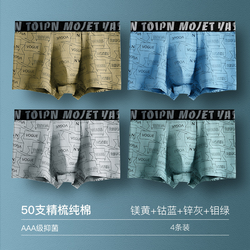 印花纯棉男内裤 纯棉U凸平角内裤中腰内裤 男士印花四角内裤