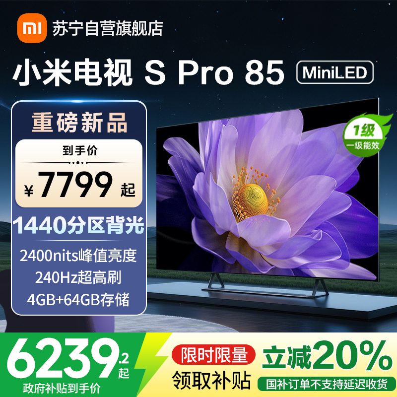 小米电视85英寸SPro85 MiniLED 1440分区背光240Hz游戏高刷4K高清4GB+64GB大存储