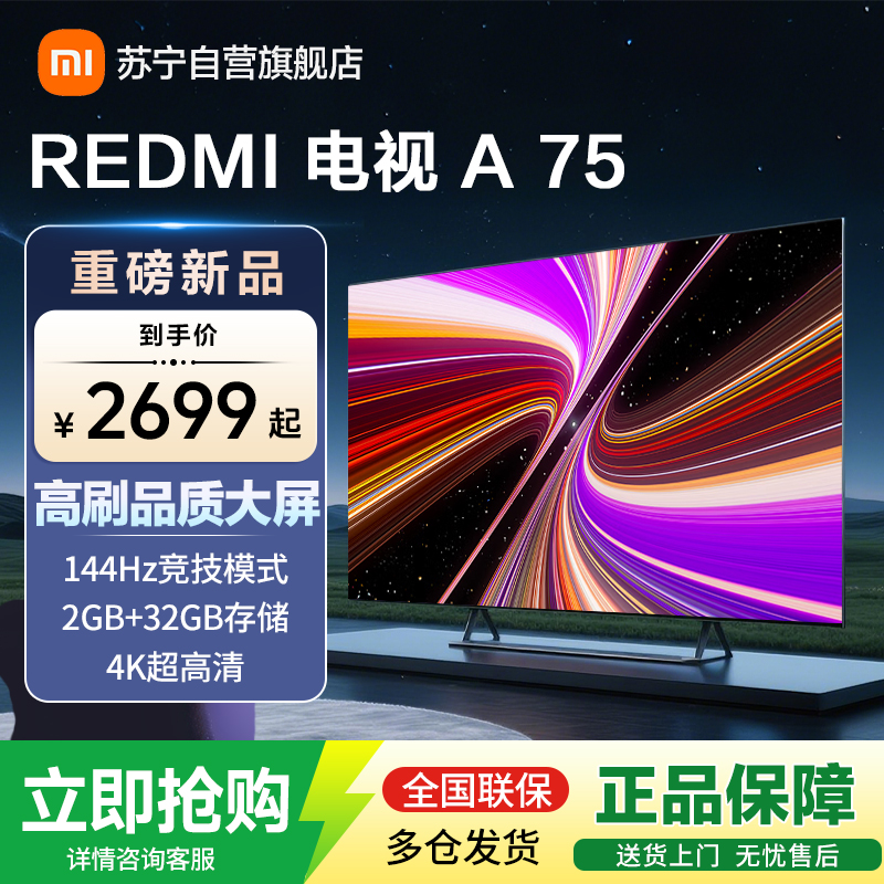 小米电视75英寸 Redmi A75 金属全面屏 4K高清32GB大内存游戏竞技高刷智能平板电视机
