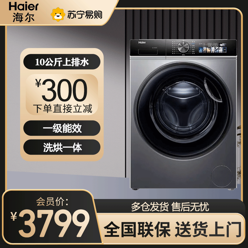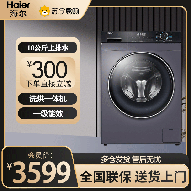 海尔(Haier)10公斤 直驱变频 全自动家用滚筒洗衣机 ABT双喷淋 XQG100-BDX14756GU1