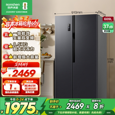 容声(Ronshen) 609升对开门冰箱 两门双变频节能一级能效CAA离子除菌净味 BCD-609WD11HP