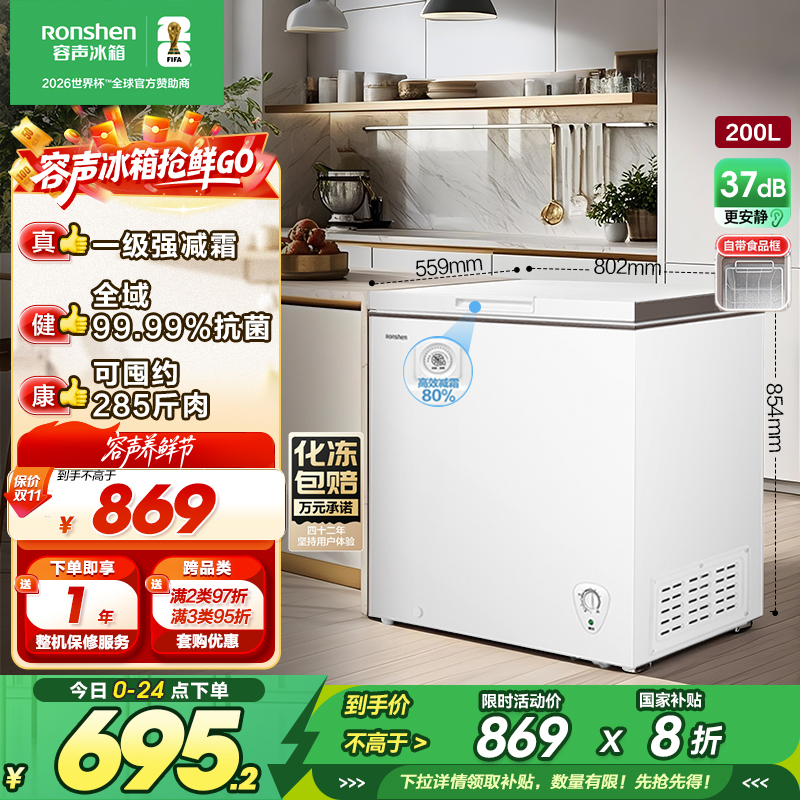 容声(Ronshen)200升减霜冰柜家商两用冷藏冷冻转换单温一级能效节能省电卧式冷柜 BD/BC-200ZMSMB