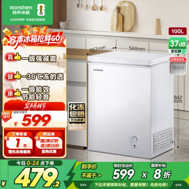 容声(Ronshen)100升顶开门小型冰柜 一级能效 母婴家用冷藏冷冻转换节能单温 (白)BD BC-100MB