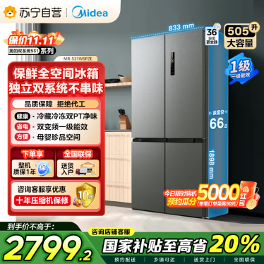 美的(Midea)双系统双循环风冷无霜对开双开十字四开门家用电冰箱一级能效变频大容量 MR-531WSPZE