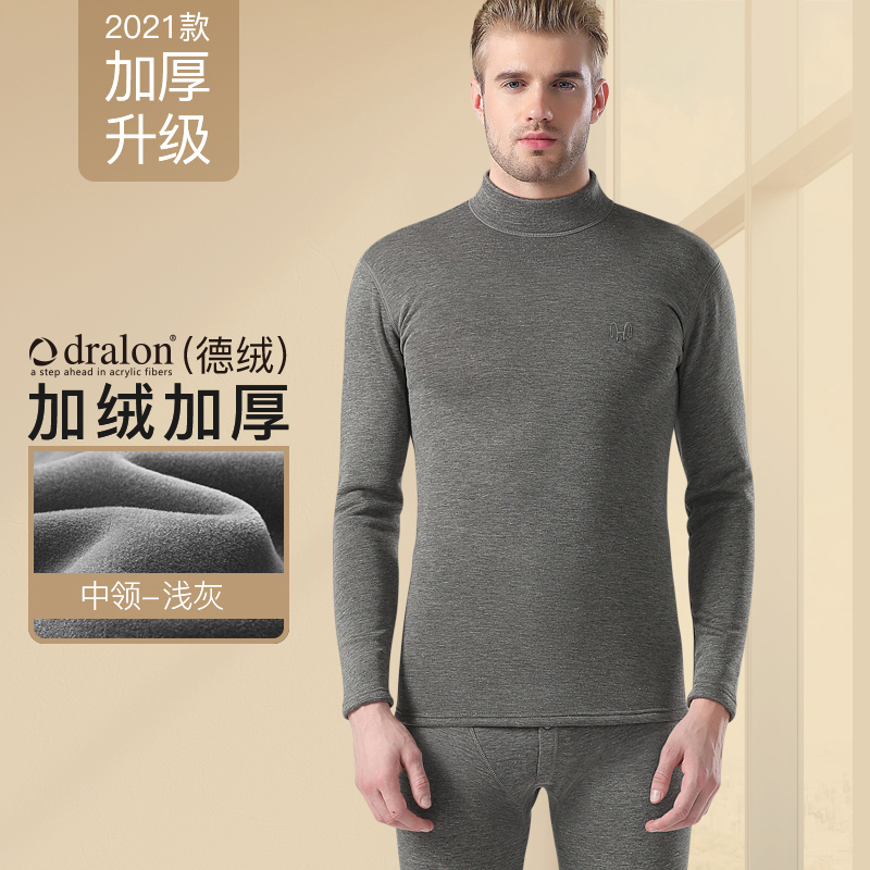 恒源祥保暖内衣男士德绒发热套装加绒加厚打底秋衣裤秋裤冬季内穿_481_572 175/XL【德绒发热AAA抗菌】 【中领】浅灰