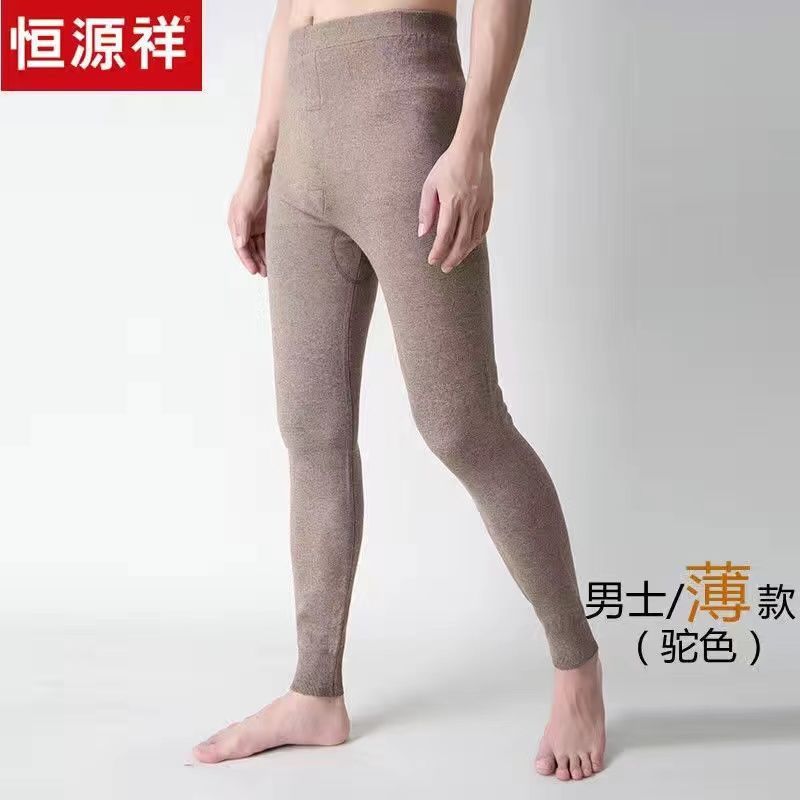 恒源祥冬季男女士羊毛裤秋裤加厚加绒高腰保暖裤针织羊绒裤打底裤_944 M165 薄款南驼色