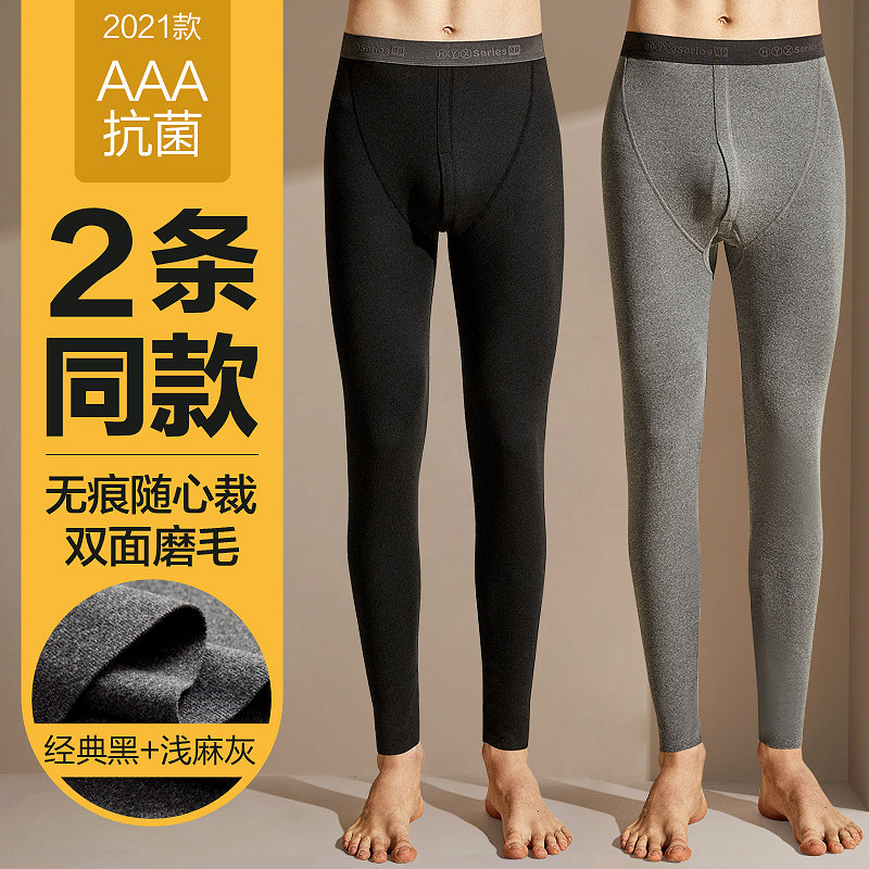 恒源祥秋裤男士保暖裤无痕德绒自发热冬季加绒裤薄款毛裤紧身打底_933 180/2XL 无痕随心裁(经典黑+浅麻灰)双面磨毛