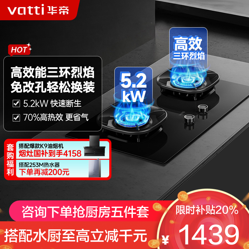 华帝(vatti)5.2KW火力燃气灶 JZT-i10105 天然气双眼灶 厨房家用嵌入式 可调节热电偶熄火保护