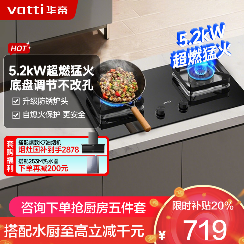 华帝(vatti)5.2KW火力燃气灶天然气双眼灶具厨房家用台嵌式可调节离子熄火保护JZT-i10075B