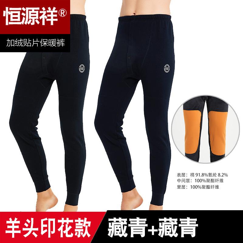 恒源祥男士保暖裤加绒加厚棉质秋裤棉毛裤毛裤打底线裤长护膝秋冬_385_76 190(XXXXL) 棉质羊头印花(藏青+藏青)