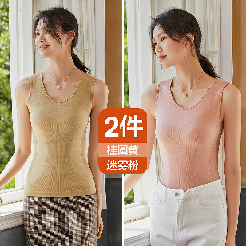 恒源祥保暖背心女士德绒自发热内衣含羊毛打底衫内穿无袖秋衣冬季 均码 桂圆黄+迷雾粉