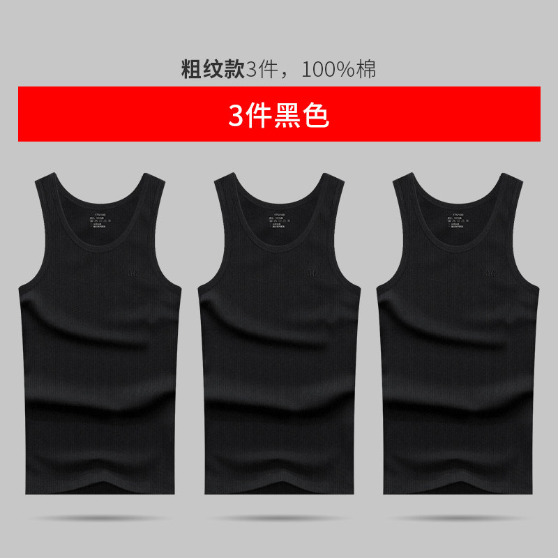 恒源祥纯棉男士背心夏季无痕跨栏内穿吸汗全棉大码打底春秋白汗衫_691 165/M 【修身】黑色+黑色+黑色