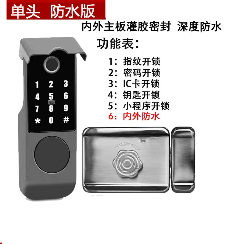 老式防盗门自动锁老式碰锁超C级叶片钥匙智能指纹十字锁 防水版