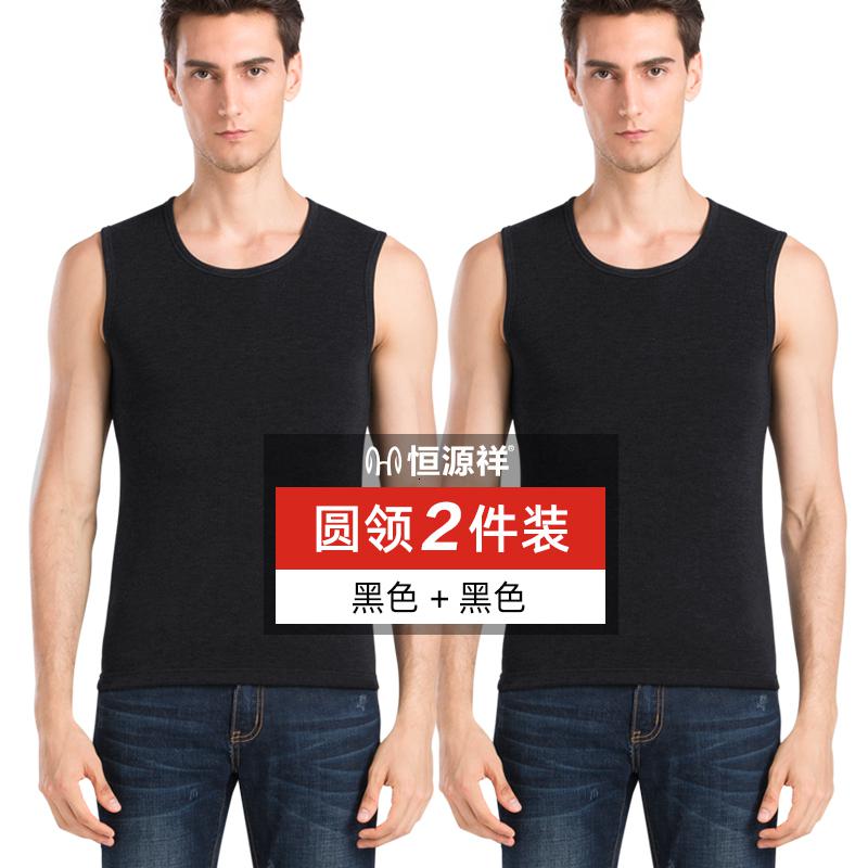恒源祥男士德绒保暖背心加绒加厚无痕打底棉马甲内穿上衣秋冬季_867_927 175/XL 【圆领】黑色+黑色