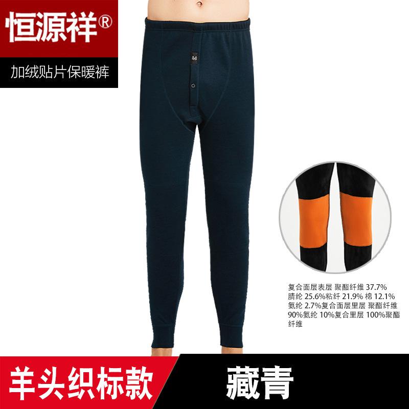 恒源祥男士保暖裤加绒加厚棉质秋裤棉毛裤毛裤打底线裤长护膝秋冬_385_76 175(XL) 德绒发热纤维羊头标藏青