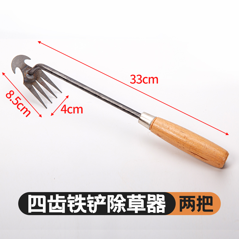 拔草器除草神器连根锄草专用工具多功能不锈钢铲草耙子松土挖野菜 木柄铁铲多用除草器两把