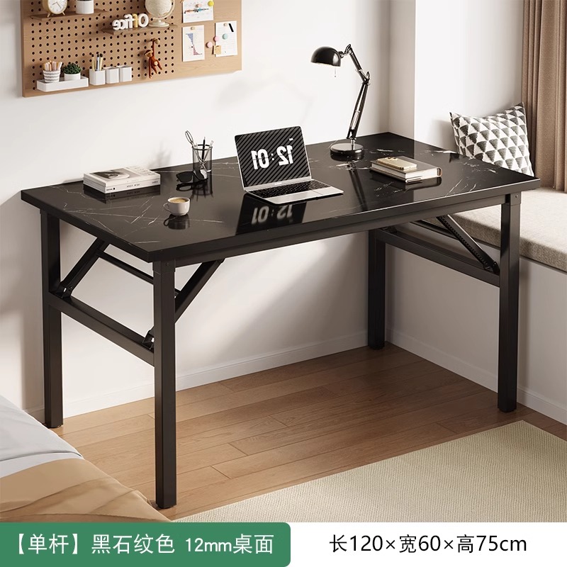 折叠桌卧室电脑桌家用长方形书桌简易办公桌学习宿舍出租屋小桌子 加粗钢管一体免安装黑石纹色120*60*75cm