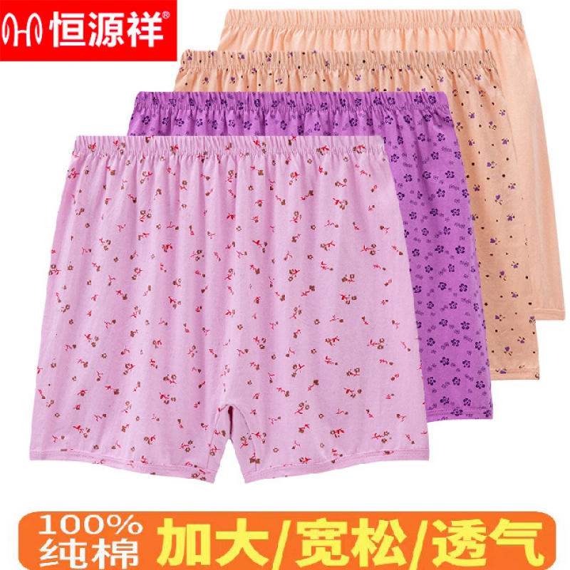 恒源祥女士妈妈内裤中老年平角碎花纯色加肥加大宽松中高腰安裤 XXXXL B组:浅粉碎花+浅玉碎花+浅紫碎花+浅玉色