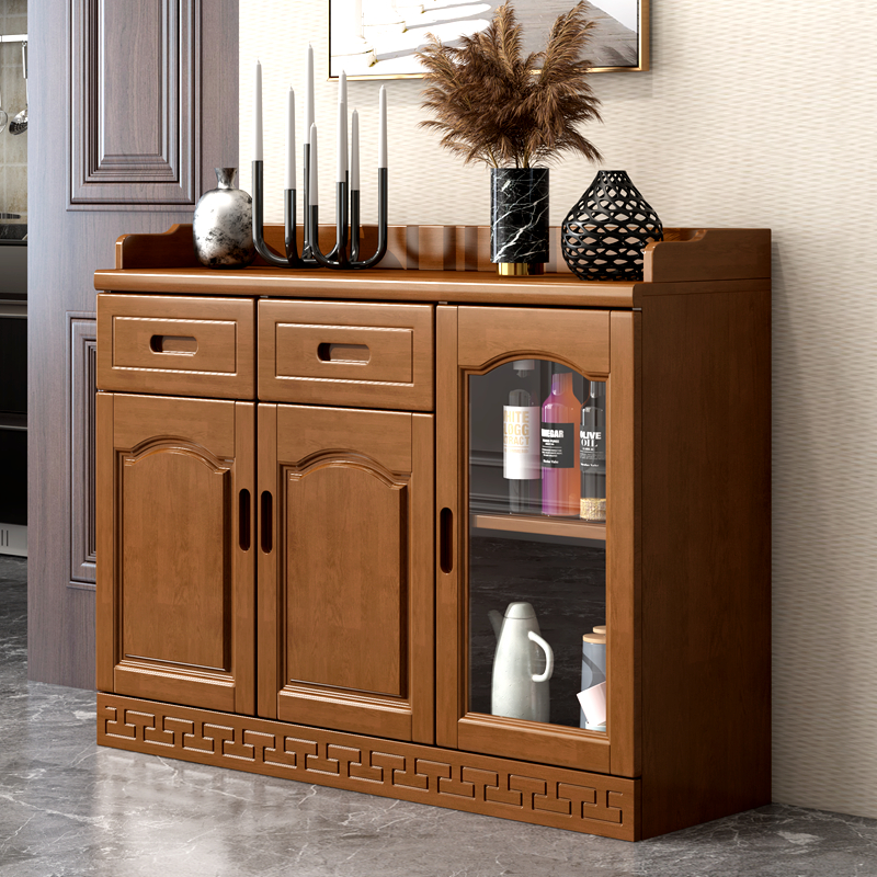 青木川 实木餐边柜酒柜一体靠墙客厅餐厅厨房家用1米多功能橱柜置物架碗柜酒水柜茶水柜收纳储物柜备餐柜小户型矮柜立柜 100x40x90cm【榉木色】