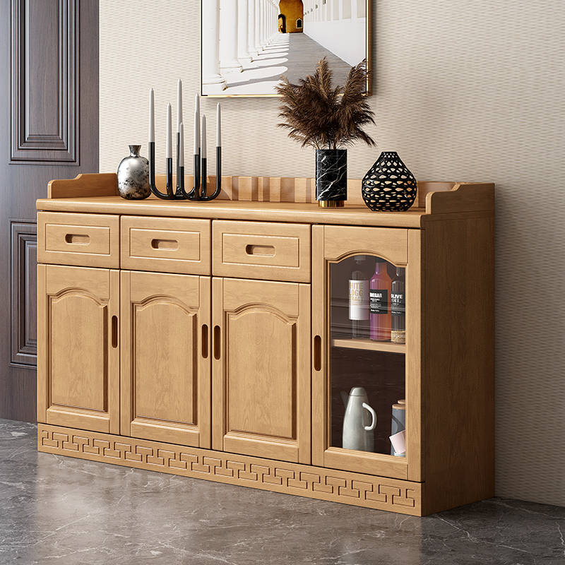 青木川 实木餐边柜酒柜一体靠墙带门矮柜1.2米餐厅家用厨房碗柜收纳储物茶叶柜备餐资料柜办公室茶水柜 三门榉木色