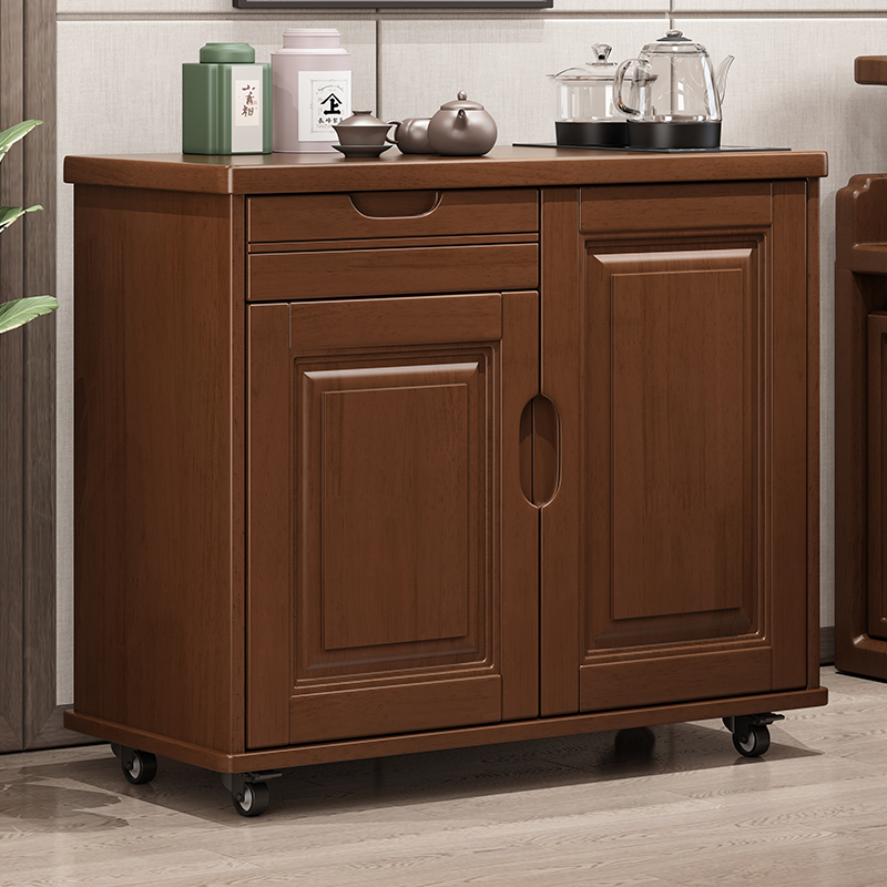 青木川 简约现代中式实木餐边柜茶吧机一体直饮机可移动靠墙客厅办公室家用带电磁炉烧水壶小茶桌茶几沙发边柜 胡桃色 长70x宽43x高70cm厘米