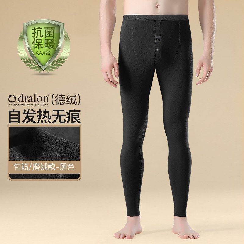恒源祥男士秋裤德绒保暖薄款打底绒裤毛裤加绒加厚线裤春秋季衬裤 165(M) 德绒自发热-黑色