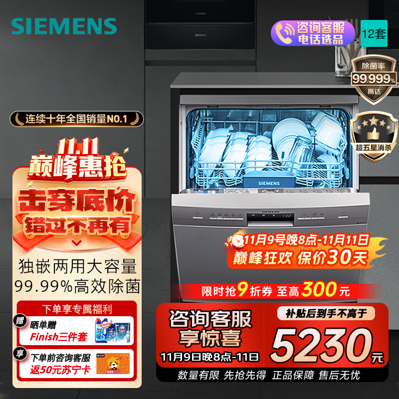 西门子(SIEMENS) 洗碗机独嵌两用家用全自动洗碗机高温除菌烘干12套 SJ236I00JC