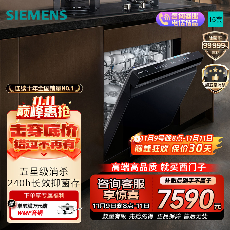 西门子 2025新品 灶下嵌入式洗碗机15套 五星级消毒 SE43HB25KC