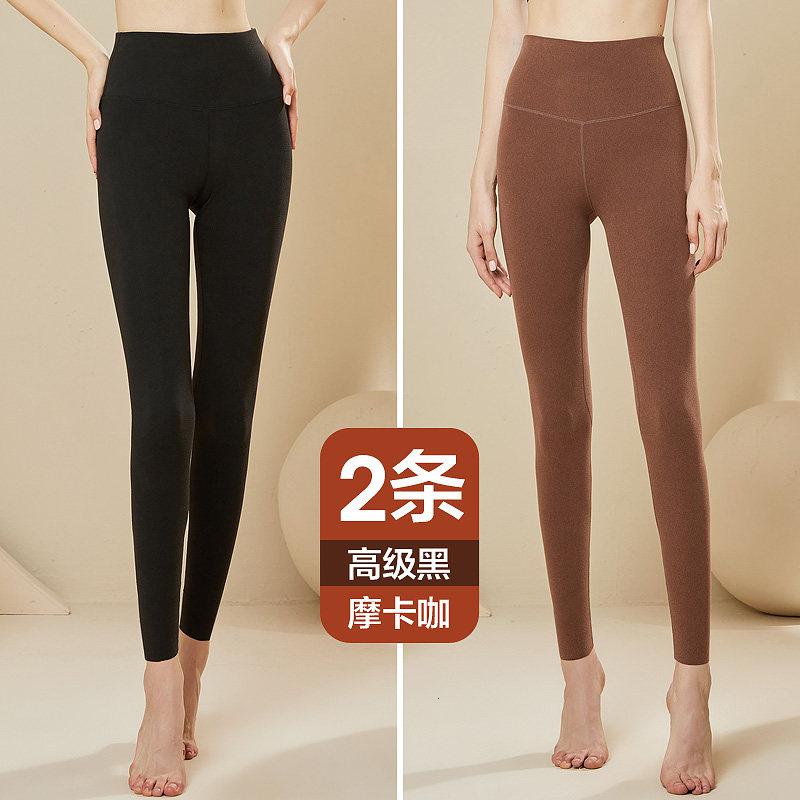 恒源祥保暖裤女士紧身无痕德绒自发热打底秋裤薄款冬季含羊毛线裤_243 175/XXL 高级黑+摩卡咖