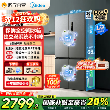 [自营]美的(Midea)双系统双循环风冷无霜对开双开十字四开门家用电冰箱一级能效变频大容量 MR-531WSPZE