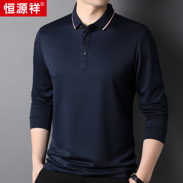 恒源祥高端桑蚕丝保罗POLO衫男士中老年打底衫莫代尔长袖T恤男装 3017藏青 M 170 48