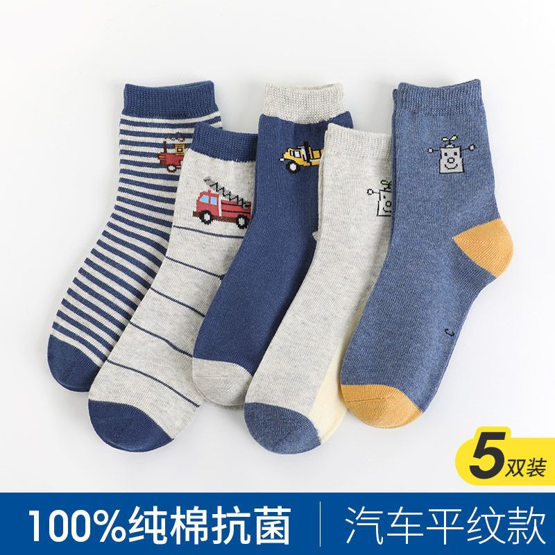 恒源祥儿童袜子纯棉男童宝宝中筒袜春秋款中大童小学生男孩棉袜_175 7-9岁(脚长18-20cm) 3910-3汽车平纹款