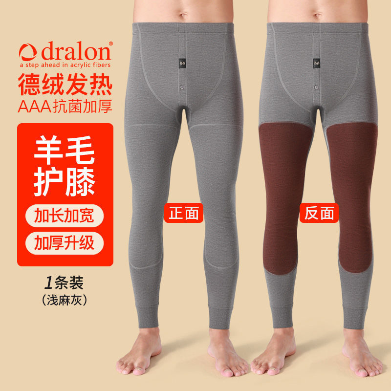 恒源祥男士加绒加厚棉毛裤德绒保暖裤秋裤羊毛裤棉裤毛裤男秋冬季 175/XL 【羊毛护膝】+绒+厚+浅灰1条装
