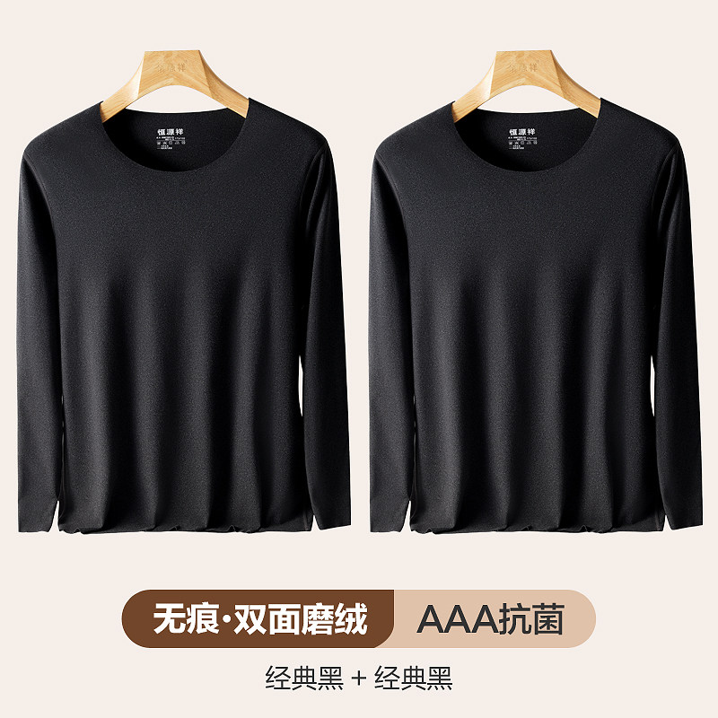 恒源祥男士保暖内衣无痕紧身打底衫内穿秋衣单件棉毛衫套装秋冬季_17_403 175(XL) 经典黑经典黑