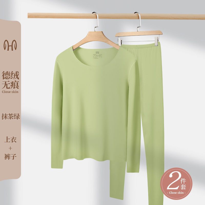 恒源祥女士保暖内衣套装德绒发热无痕打底内穿修身秋衣秋裤女冬季_690 170/L /德绒无痕-【1上衣+1裤子】抹茶绿