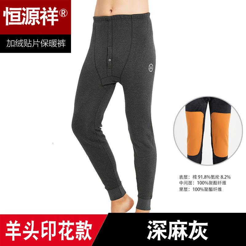 恒源祥男士保暖裤加绒加厚棉质秋裤棉毛裤毛裤打底线裤长护膝秋冬_385_76 185(XXXL) 棉质羊头印花深麻灰色