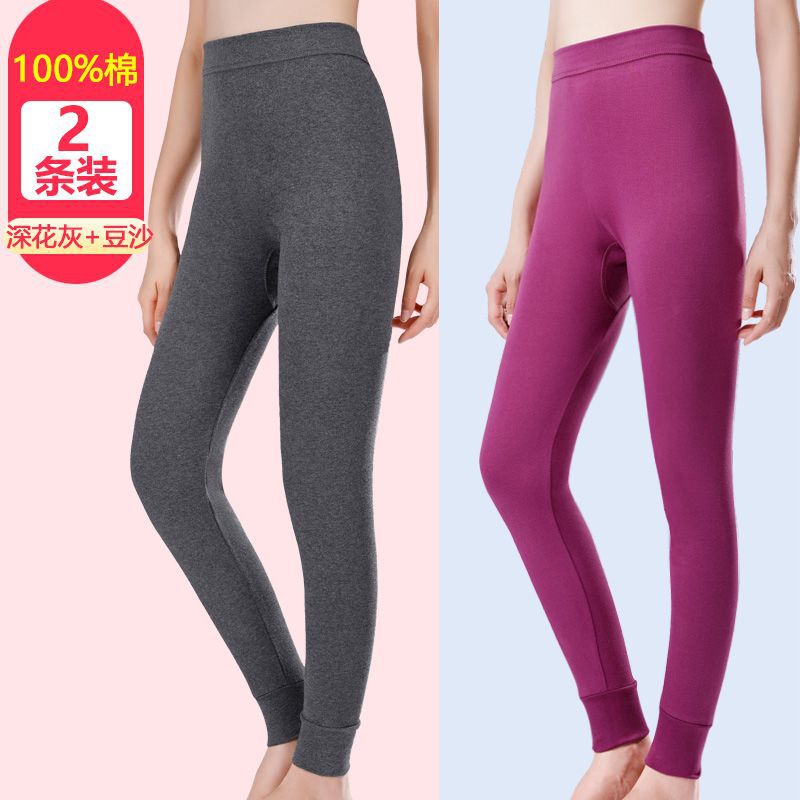 恒源祥秋裤女薄款纯棉中老年保暖裤女士宽松棉毛裤单件中高腰 XL175 豆沙红+深花灰两条装