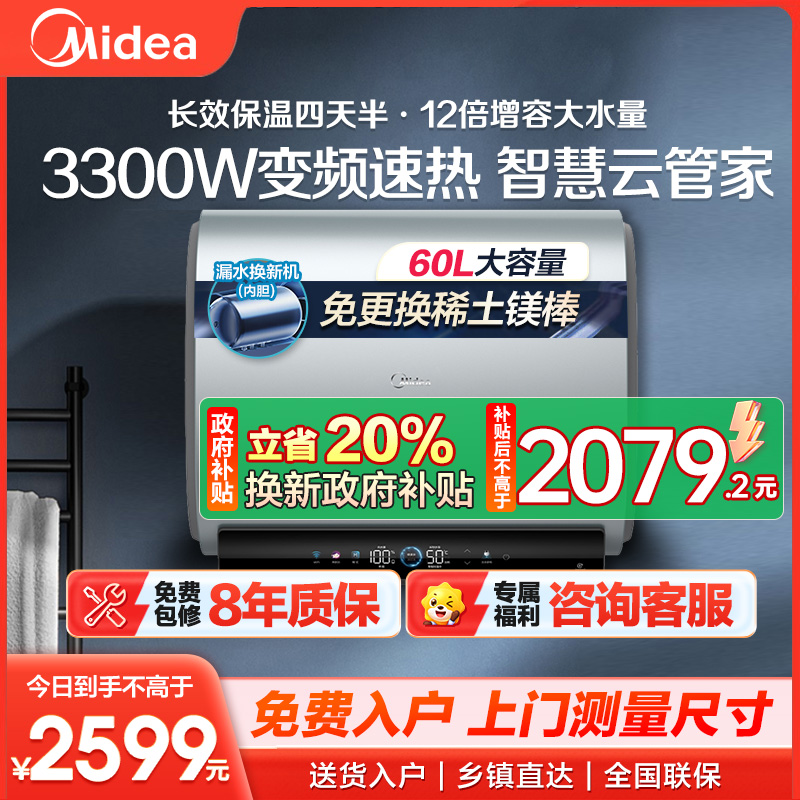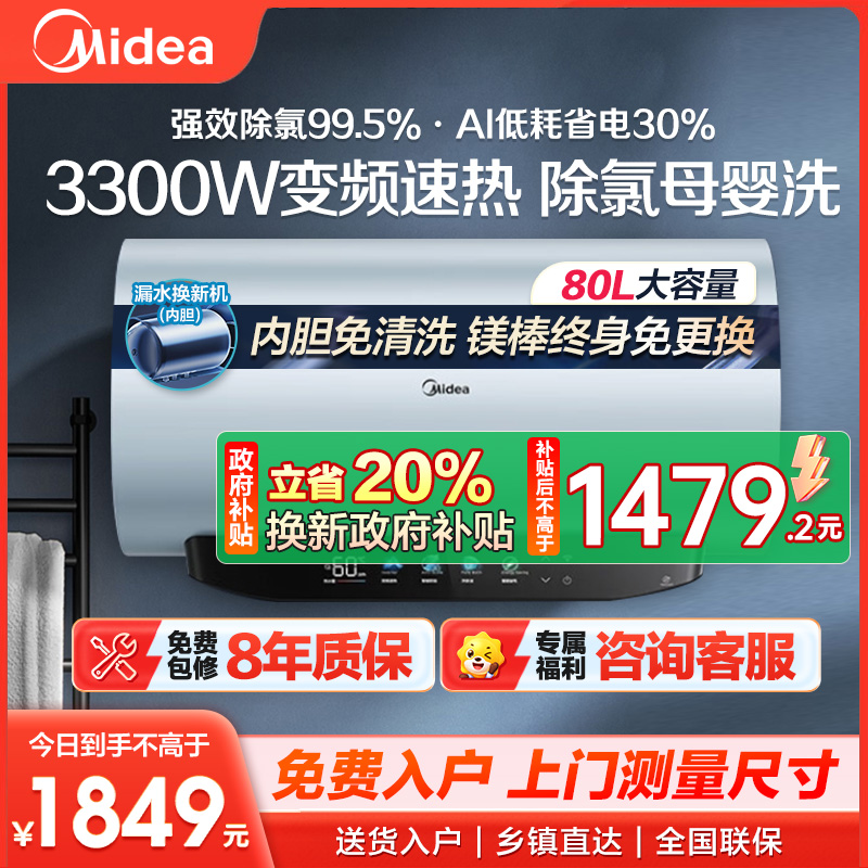 美的电热水器80升储水式 3300W变频 终身免换镁棒省钱 安全零电洗一级节能 智能家电 F8032-JA5(HE)