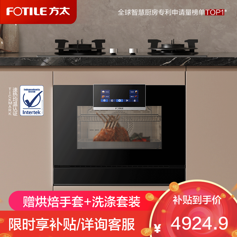 方太(FOTILE)12寸彩膜屏蒸烤箱一体机 嵌入式家用智能蒸烤炖炸四合一 手机智控脱脂炸大容量蒸箱烤箱02-EF1