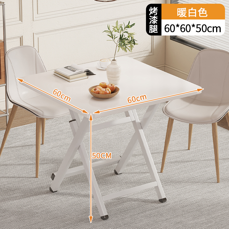 折叠桌子餐桌家用简易小户型长方形吃饭桌便携式户外摆摊长条桌 暖白色60*60*50H型-烤漆腿-结实稳固 均码