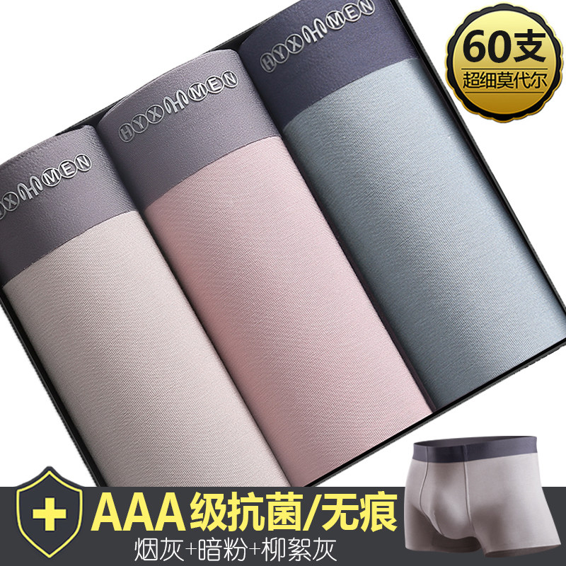 恒源祥男士内裤莫代尔平角裤薄款无痕夏季冰丝透气四角裤短裤_1 185/XXXL 【抑菌内裆】柳絮灰+烟灰+暗粉
